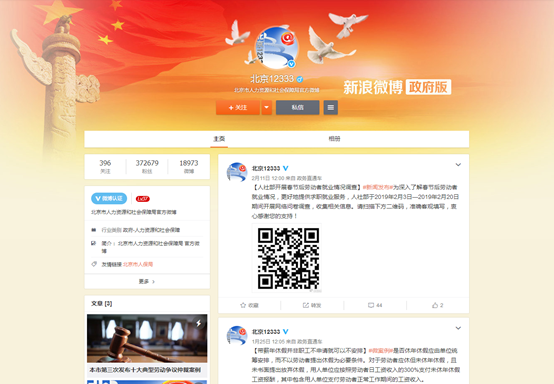 充分发挥好“两微一端”新平台,继续做好微信公众号及手机客户端界面优化,不断优化服务功能,让服务更加便民。2018年完成了我局手机客户端和微信公众号功能优化工作,新增了15项在线办事服务,方便群众通过移动端互联网服务实现社保卡申领、补换卡;查询社保个人权益、招聘岗位信息、公务员公共科目笔试成绩、劳动能力鉴定结论等,实现了“互联网+就业”的突破,在局网站、手机客户端和微信公众号开通了技能提升补贴申请。自2018年初以来,我局官方微信公众号关注人数达36万人,官方手机客户端下载量达5万余次。在微信公众号“职人职说”、“百姓就业”、“好工作”、局官方政务微博“北京12333”和“北京人力社保”今日头条号等平台,运用案例解读、图表图解、音频视频等形式,以通俗易懂的语言对人力社保惠民政策开展形象化解读,扩大政策影响力。